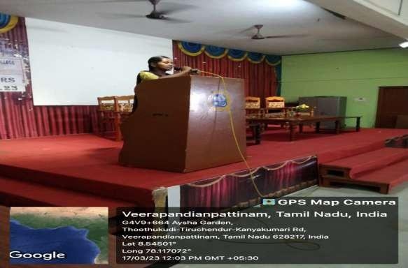 The Pathfinders' Club was inaugurated in the ICT hall at 11.30 am on 17/03/23. The event was attended by students from all departments. Dr.J. Sugantham Parimala, Assistant Professor of Economics welcomed the gathering. As the inaugural speaker, Dr. Rama, Principal of Wavoo Wajeeha College, graced the event. Dr.M. Christy Mercy, Assistant Professor of Tamil, and Mrs.G.Ebenezar Helan, Assistant Professor of English attended the event as well.